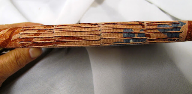 Long stitch binding is exposed on